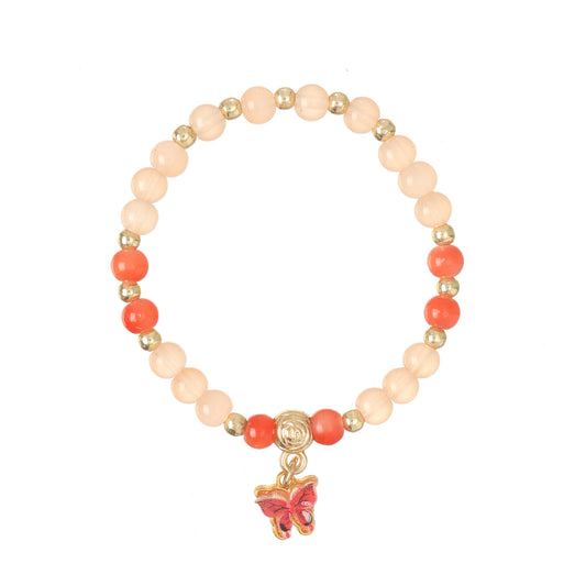 Red Butterfly Charm Beaded Stretch Bracelet