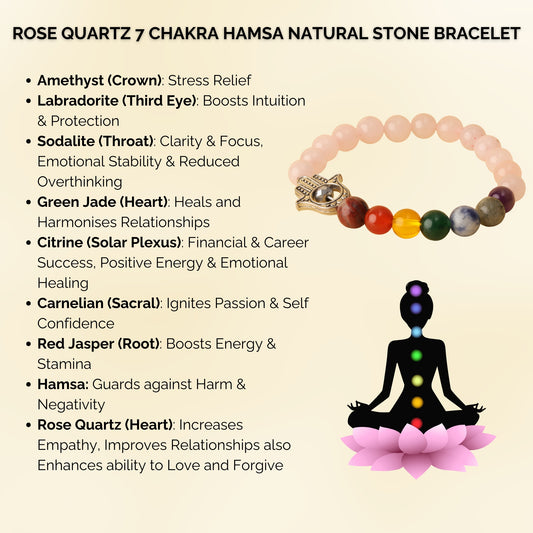 Rose Quartz 7 Chakra Hamsa Natural Stone Bracelet