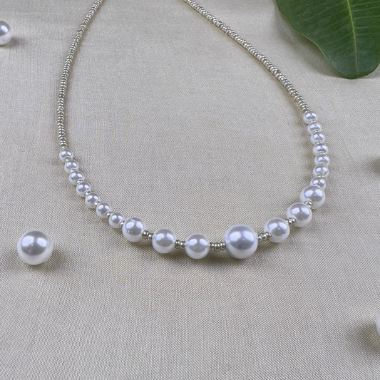 Round Pearl Necklace with Dainty Seed Beads