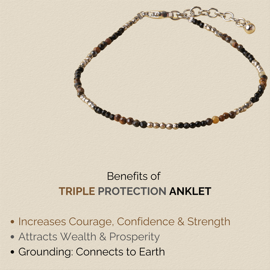 Triple Protection Anklet - Tiger Eye, Pyrite, Black Obsidian Natural Stone