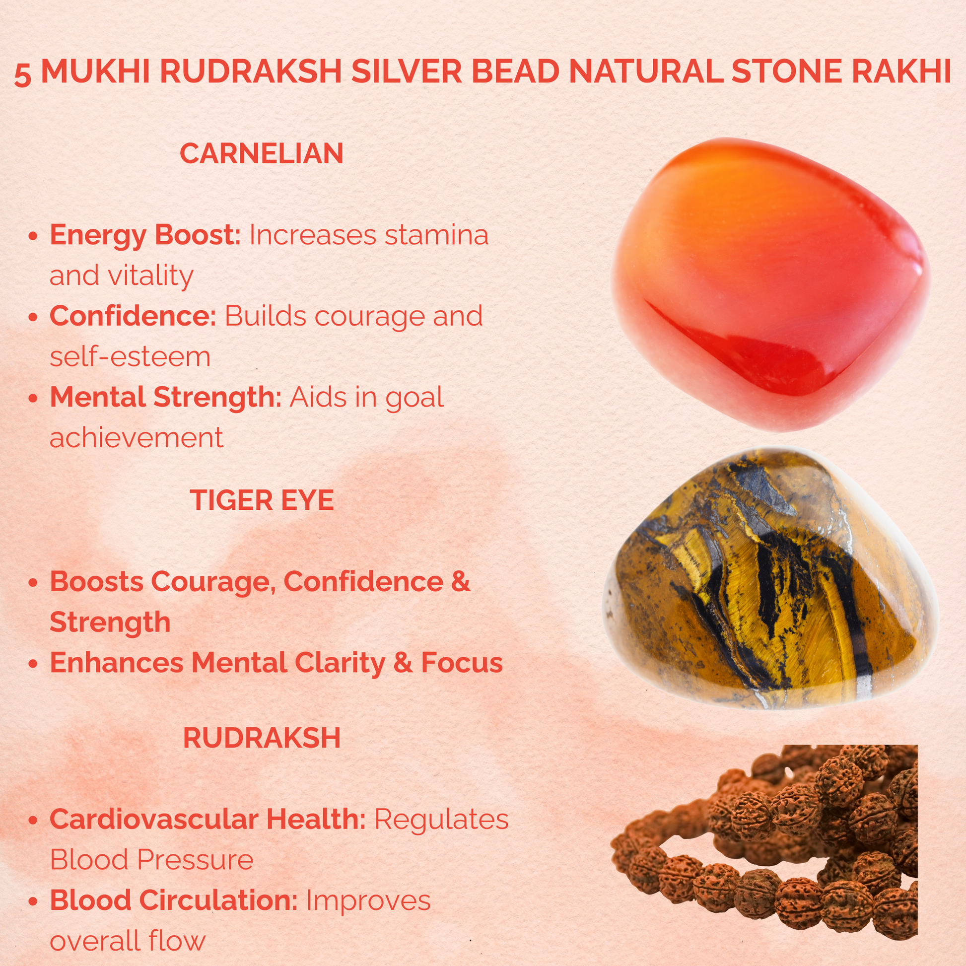 5 Mukhi Rudraksh Silver Bead Natural Stone Rakhi