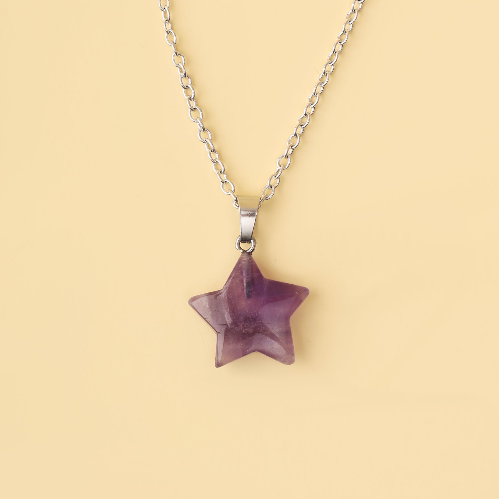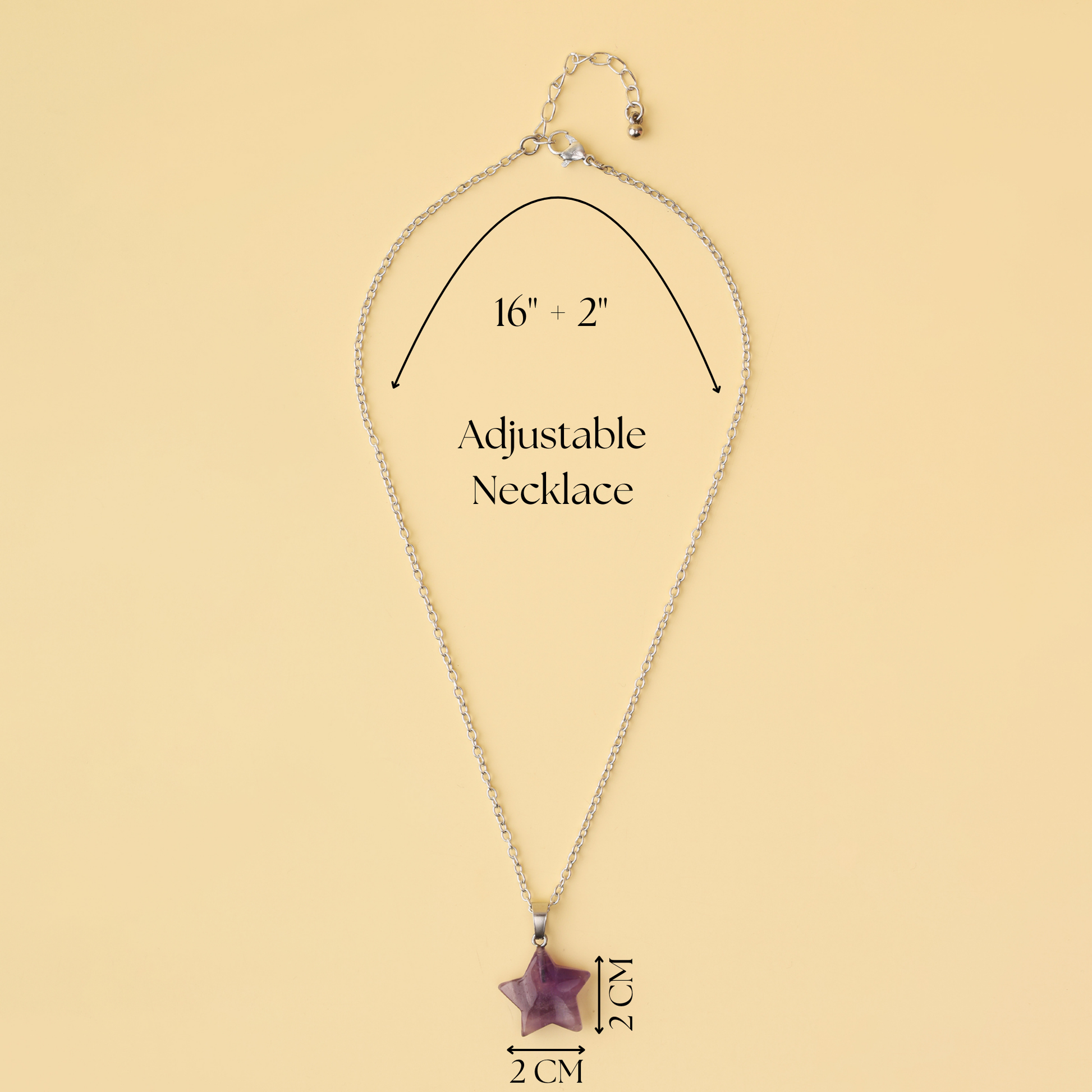 Wearing the Amethyst Star Pendant Necklace is believed to balance the Third Eye and Crown chakras, reduce stress, bring clarity, promote restful sleep, and protect against negative energies.