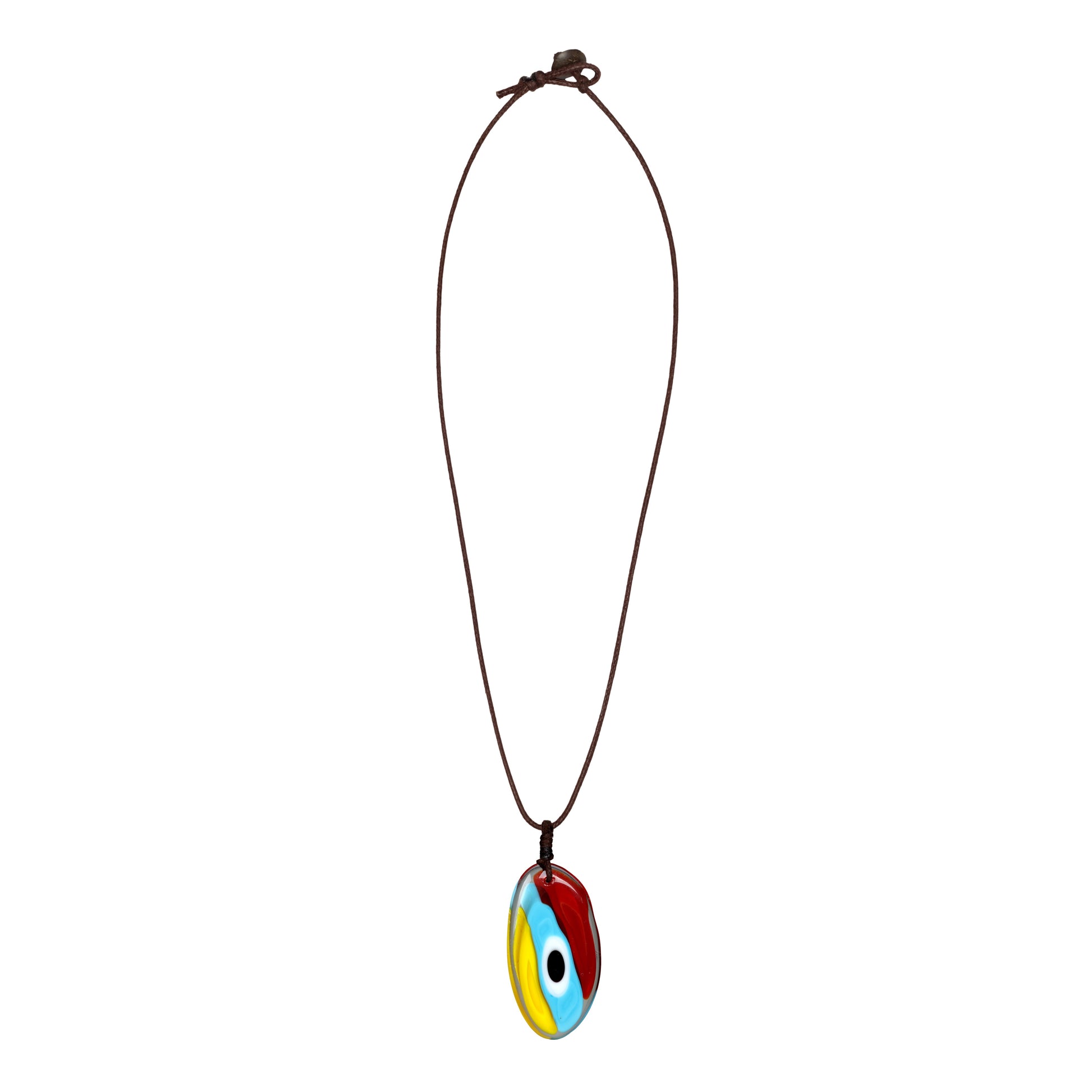 Infuse your look with vibrant charm and a touch of mystique with the Adam Choker Necklace, featuring a striking multi-colour evil eye pendant. Crafted from high-quality glass, the pendant showcases rich shades of red, yellow, and blue, symbolising protection and positivity. This elegant choker is designed with a secure button-and-loop closure for a comfortable and hassle-free fit. Perfect for everyday wear or special occasions, this statement piece from Adam adds a pop of colour and a dash of intrigue to your jewellery collection.