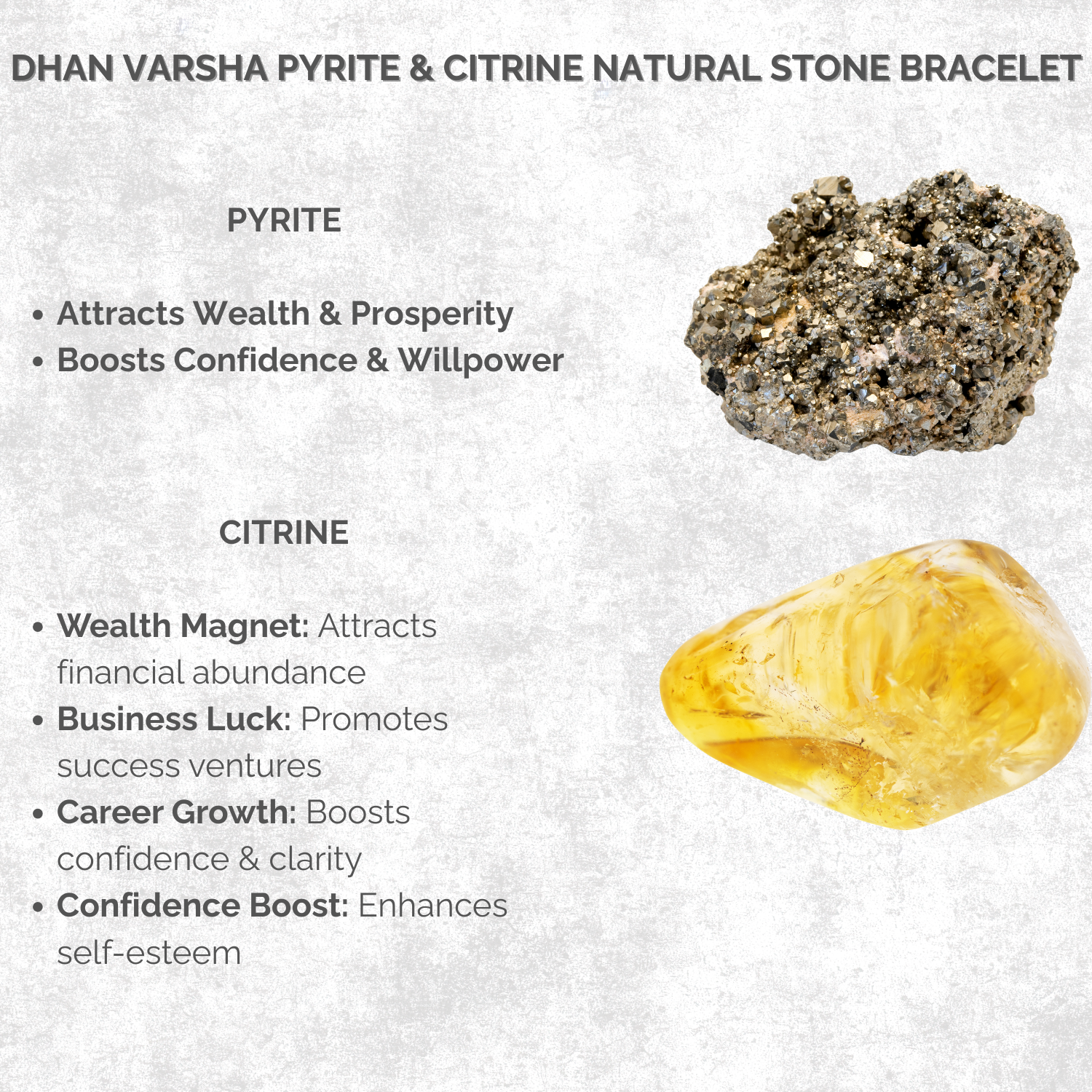 Wear the Dhan Varsha Pyrite & Citrine Natural Stone Bracelet as your Radiant Symbol of Wealth, Success, and Positive Energy - crafted to Attract Prosperity, Spark Creativity, and Uplift your Spirit Every Day.