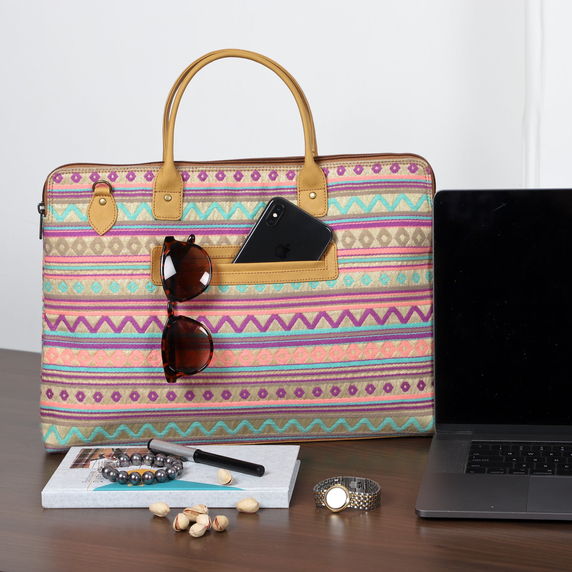 Laptop Bag for Women for 15.6 inch Laptop (Aztec Pink & Blue)