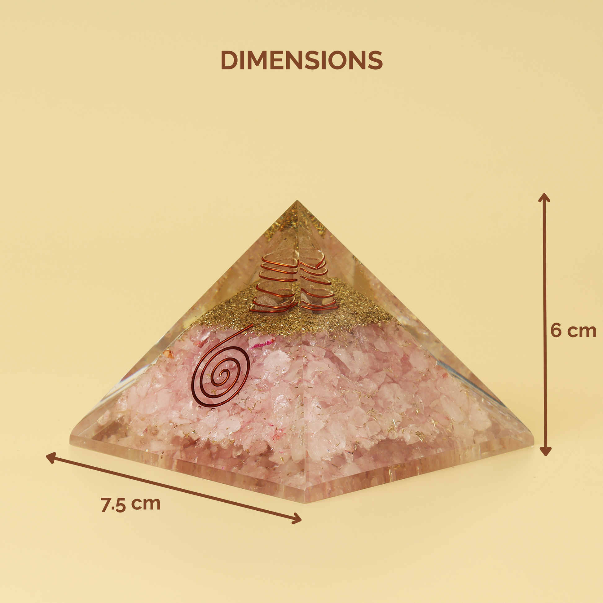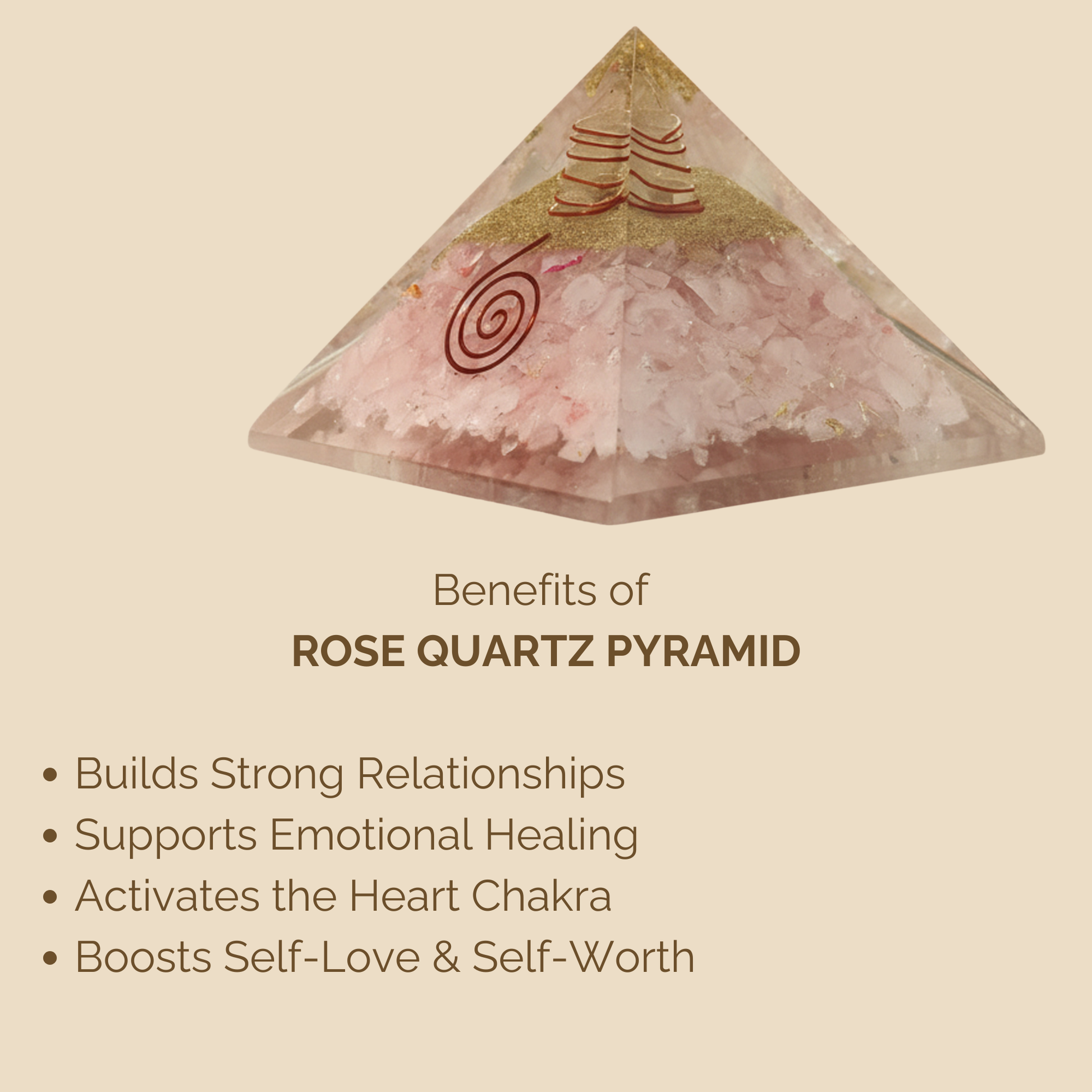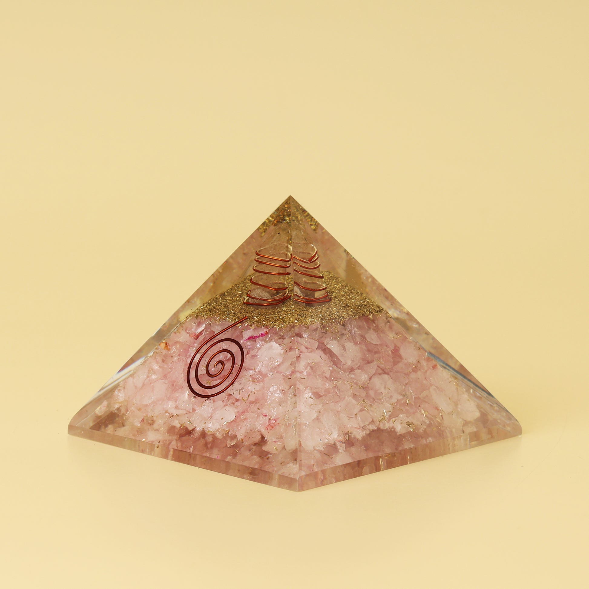 The Love Attraction Pyramid is a beautifully crafted crystal décor piece designed to symbolise love, harmony, and emotional balance. Made with natural Rose Quartz, copper elements, resin, and sacred geometric design, this pyramid blends meaningful symbolism with elegant aesthetics, making it ideal for bedrooms, meditation spaces, and personal corners.