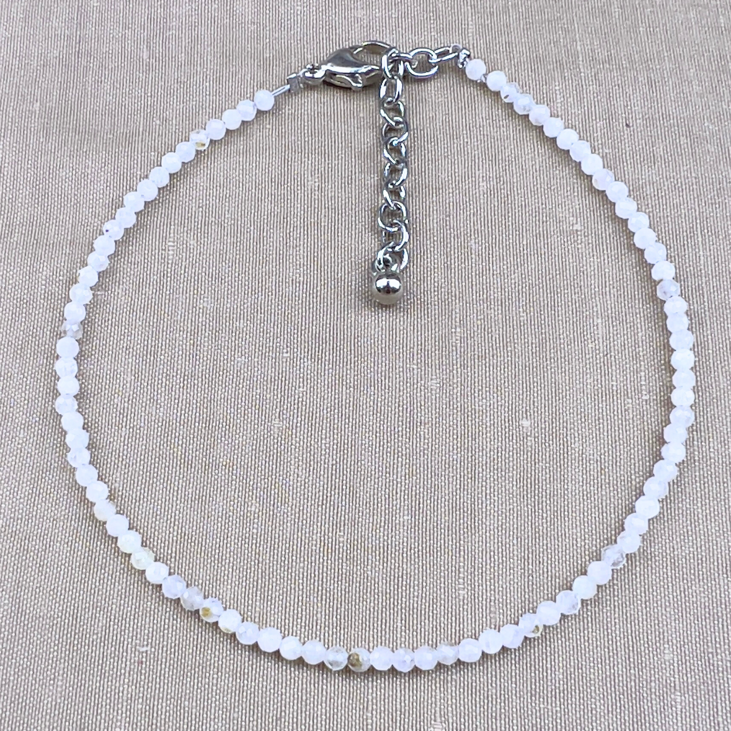 Embrace serenity, intuition, and renewal with our Moonstone Natural Stone Anklet. Known as the “Stone of New Beginnings,” Moonstone carries a gentle, calming energy that soothes emotions, enhances inner clarity, and promotes balance in both mind and body.